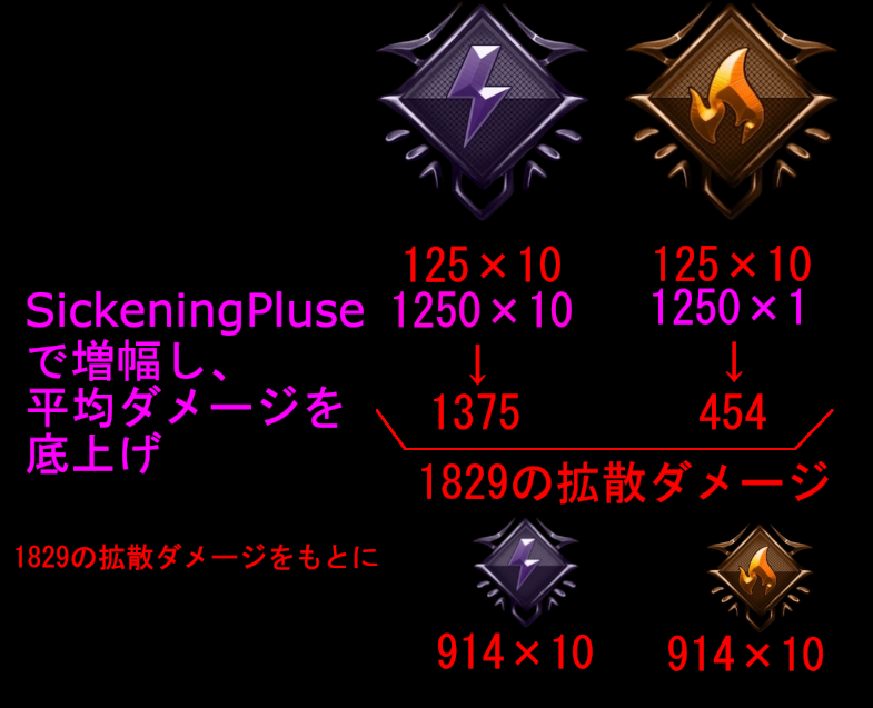 この状態異常が拡散した状態でさらにSickeningPluseを撃てば、拡散した状態異常が更に強化される。